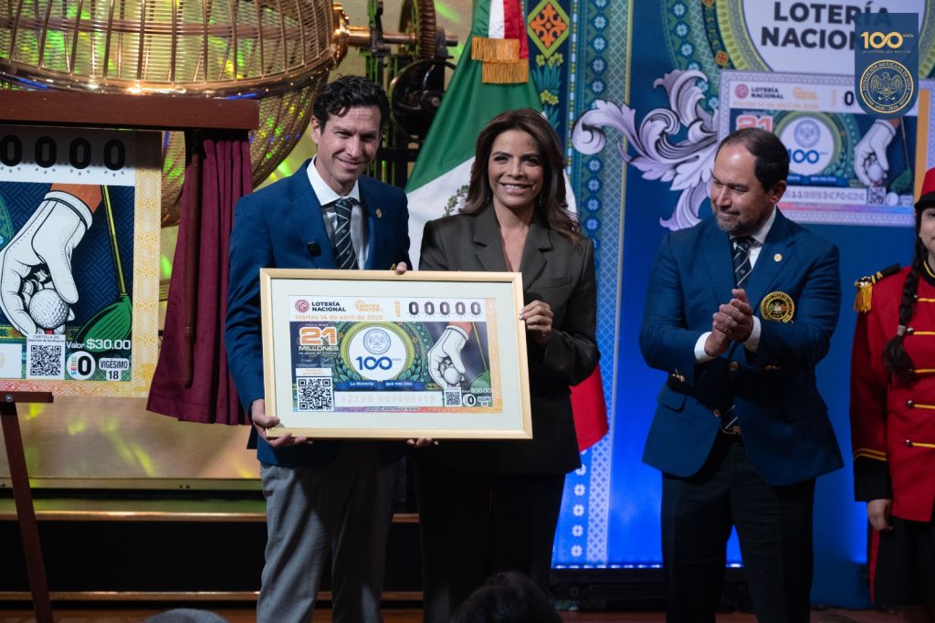 Para celebrar cien años de trayectoria de la Federación Mexicana de Golf (FMG), Lotería Nacional lanzó un billete especial que honra su legado como el principal promotor de esta disciplina en el país, recordando aquel 11 de abril de 1926 cuando cinco clubes pioneros se unieron para formalizar la práctica del golf en territorio nacional. La presentación de este cachito, enmarcado en el Sorteo Mayor No. 4009, estuvo a cargo de la directora general de Lotería Nacional, Olivia Salomón; Andrés Jurado Rivera Torres, presidente de la Federación Mexicana de Golf, y Carolina Acosta Álvarez, directora de Alto Rendimiento de la Conade.